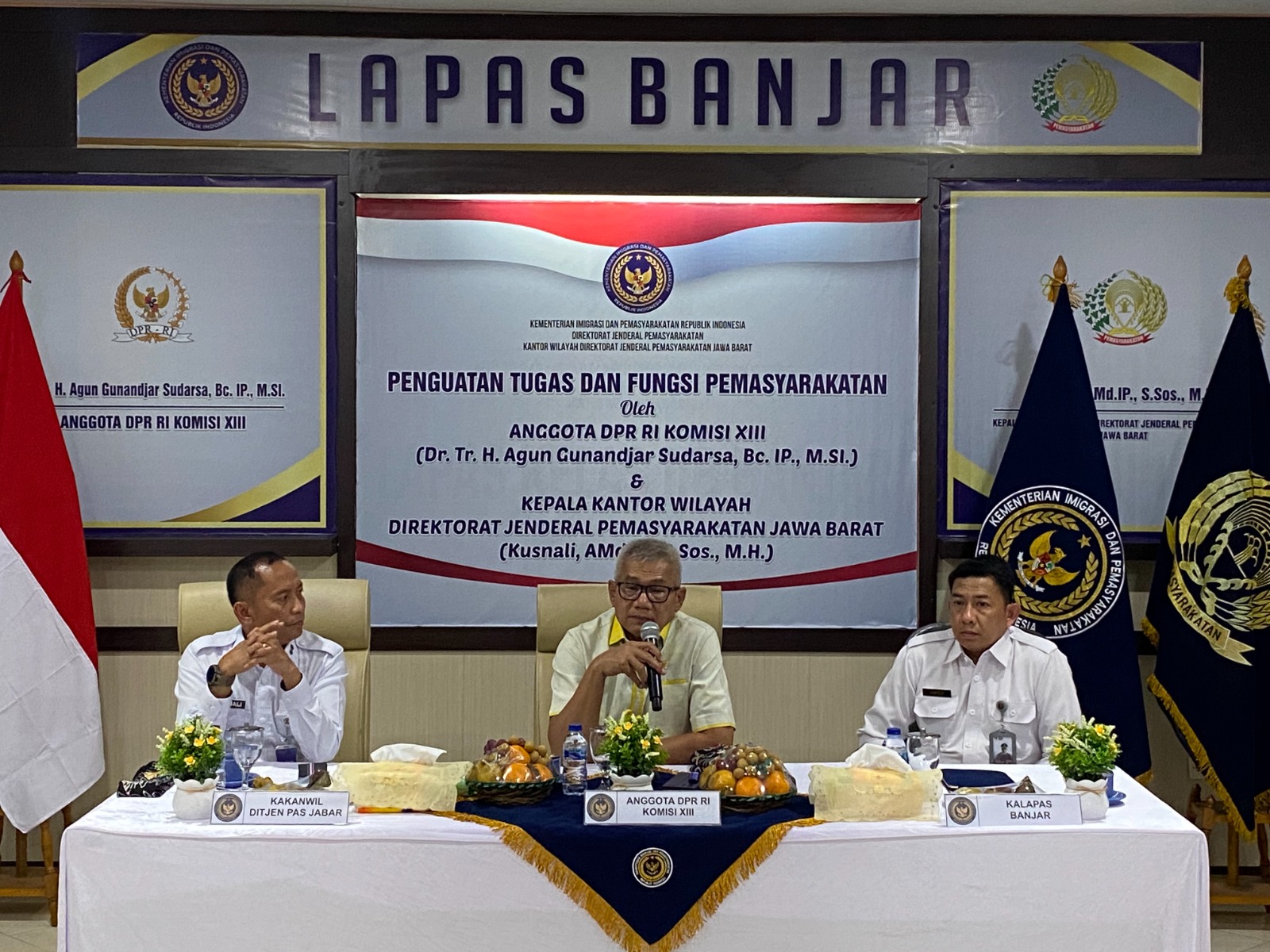 Kota Banjar–Anggota DPR R.I Komisi XIII Bapak Dr. Tr. Agun Gunandjar Sudarsa, Bc.IP., M.Si. dan Kakanwil Ditjenpas Jawa Barat Kusnali Amd.IP., S.Sos., M.H mengunjungi Lapas Kelas IIB Banjar dalam rangka Kunjungan Kerja dan Penguatan Tugas dan Fungsi Pemasyarakatan, Kamis (30/01).