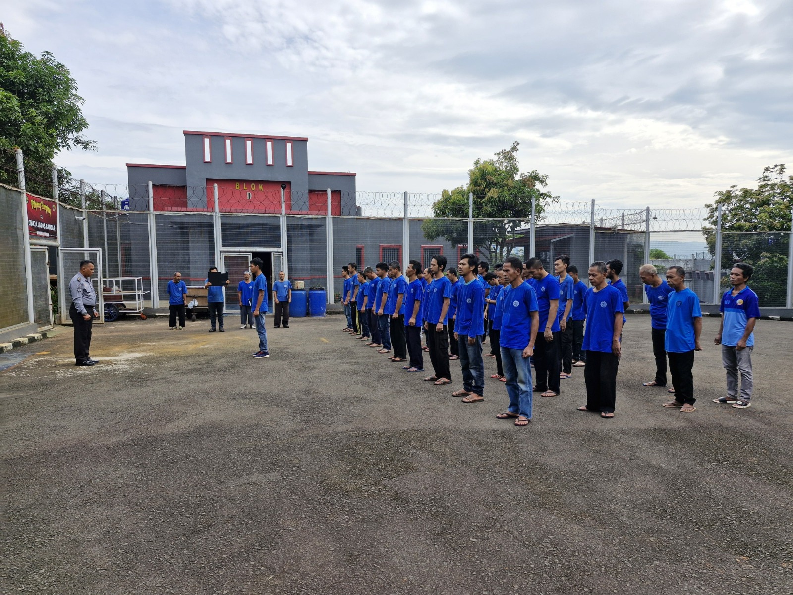 Bertempat di lapangan apel yang berlokasi di depan Workshop Kegiatan Kerja, Kepala Sub Seksi Kegiatan Kerja Dony Irawan memimpin apel sekaligus mengecek kehadiran warga binaan khususnya kesiapan dalam mengikuti program pembinaan kemandirian.