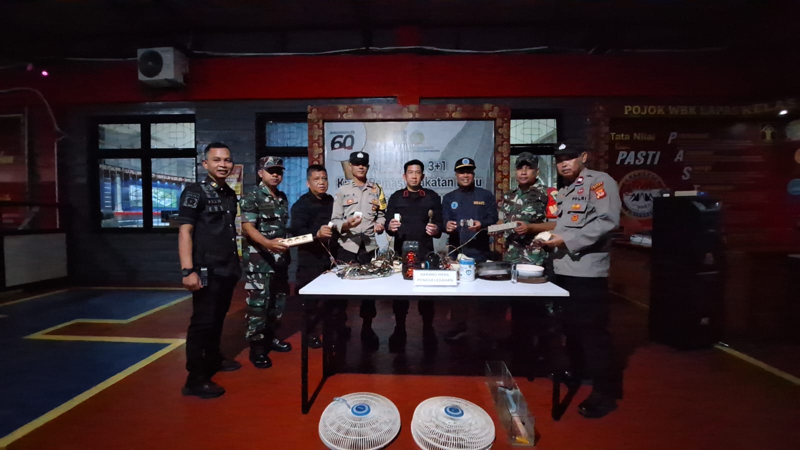 Hasil Razia yang ditemukan oleh tim gabungan antara lain kabel sepanjang 3 meter, Terminal Listrik sebanyak 3 Buah, Sendok Stainless 1 buah, Kawat : 1 Buah, Speaker aktif 1 buah, botol parfum sebanyak 2 buah dan kaca akuarium. Hasil razia tidak ditemukan Narkotika maupun obat – obatan terlarang, tidak ditemukan alat komunikasi. Hasil test urine pegawai dan warga binaan seluruhnya negatif mengkonsumsi narkoba atau obat terlarang.