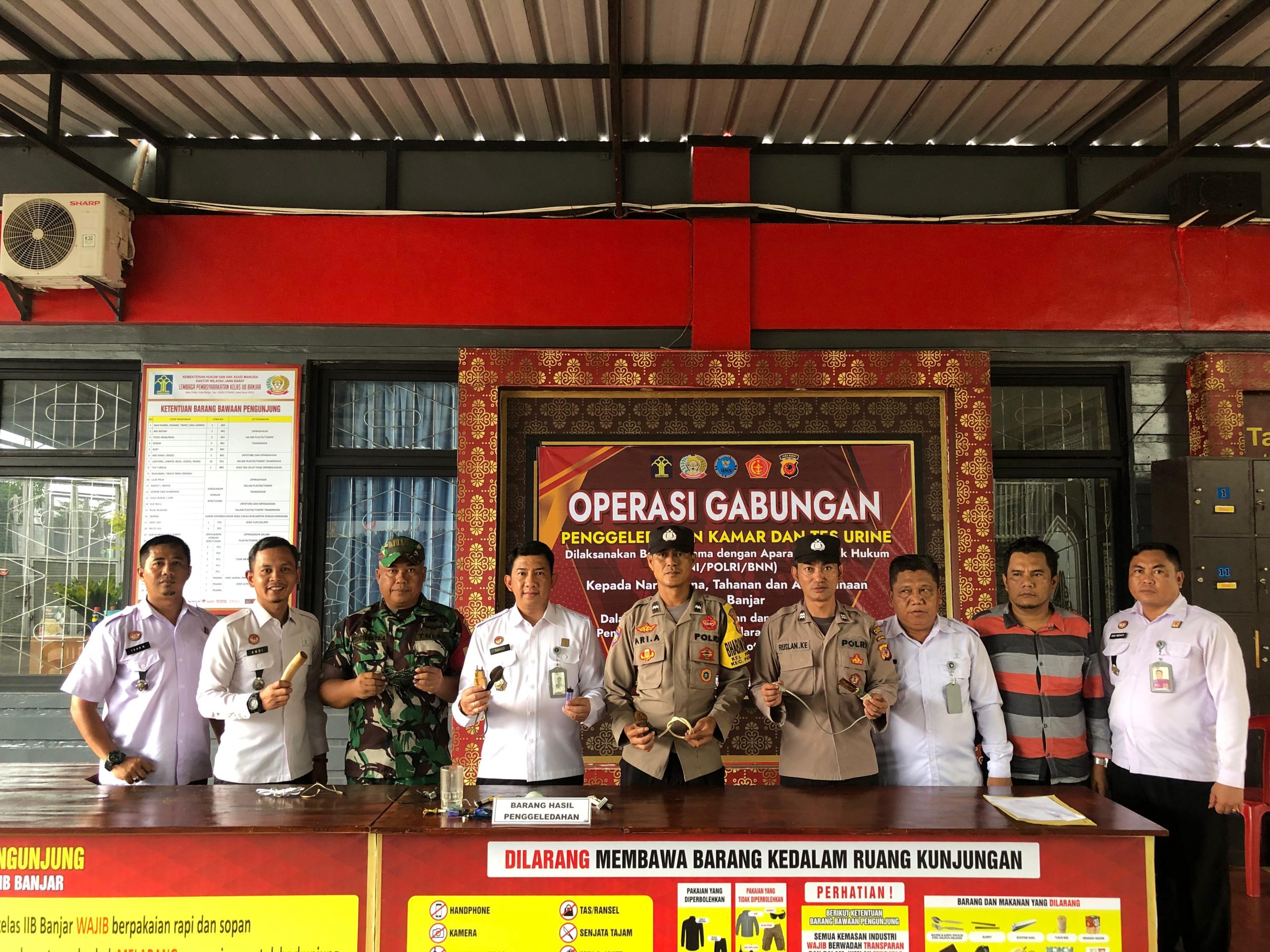 Dalam kegiatan tersebut, Petugas Lapas Kelas IIB Banjar bersama dengan Anggota Polsek Pataruman dan Koramil Langensari memeriksa area blok hunian dan melakukan pengecekan secara menyeluruh terhadap barang-barang milik warga binaan. Selain itu, seluruh petugas Lapas Kelas IIB Banjar dan sejumlah warga binaan dipilih secara acak untuk menjalani tes urine sebagai upaya memastikan bebas dari penyalahgunaan narkotika.