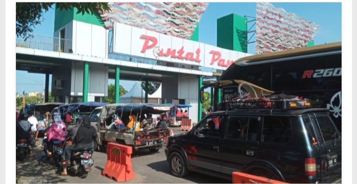 Terlihat di gerbang pintu masuk kendaran roda empat dan dua antri di loket masuk, Selasa (3/5/2022).