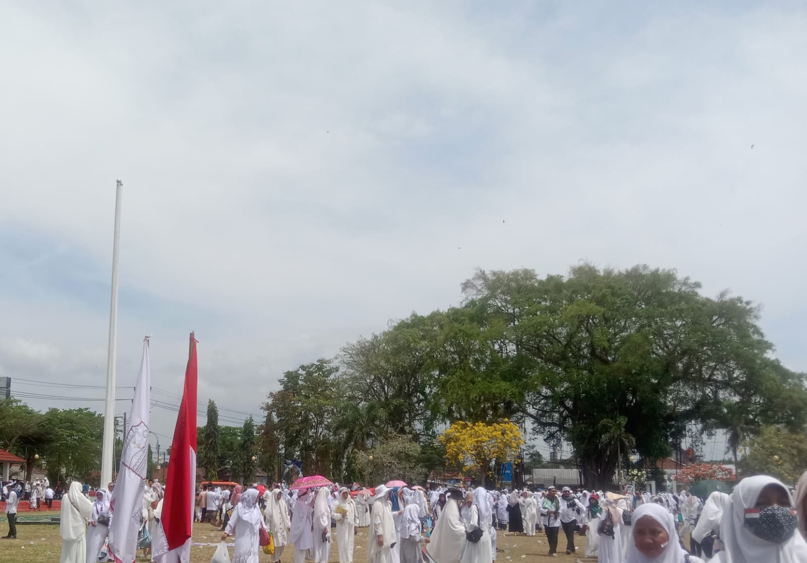 Baraknews Pangandaran–Aksi bela palestina itu terjadwal dari mulai jam 8 pagi sampai jam 11 di lapangan alun alun parigi seketika penuh sesak di hariri oleh orang berbaju putih dengan atribut berwarna merah ,hijau ,hitam ,dan putih khas warna bendera palestina
