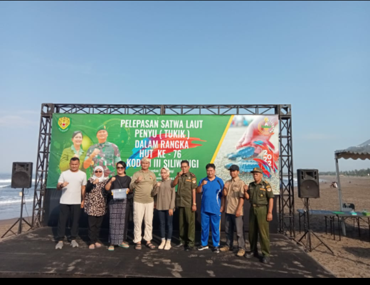 Baraknews kab.Pangandaran –Pangdam Siliwangi melakukan pelepas penyu dalam rangka HUT ke 76 KODAM III Siliwangi guna melestarikan populasi satwa laut yang hampir punah, kegiatan tersebut dilakukan di pantai pangandaran.