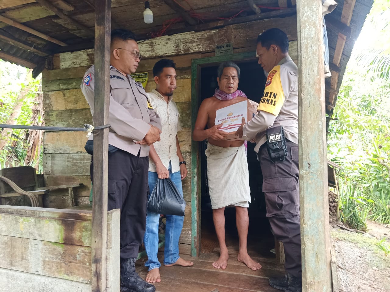 Ipda Deni Mashuri, S.H. beserta anggotanya menyerahkan bantuan sosial kemanusian kepada masyarakat kurang mampu dan sakit menahun.