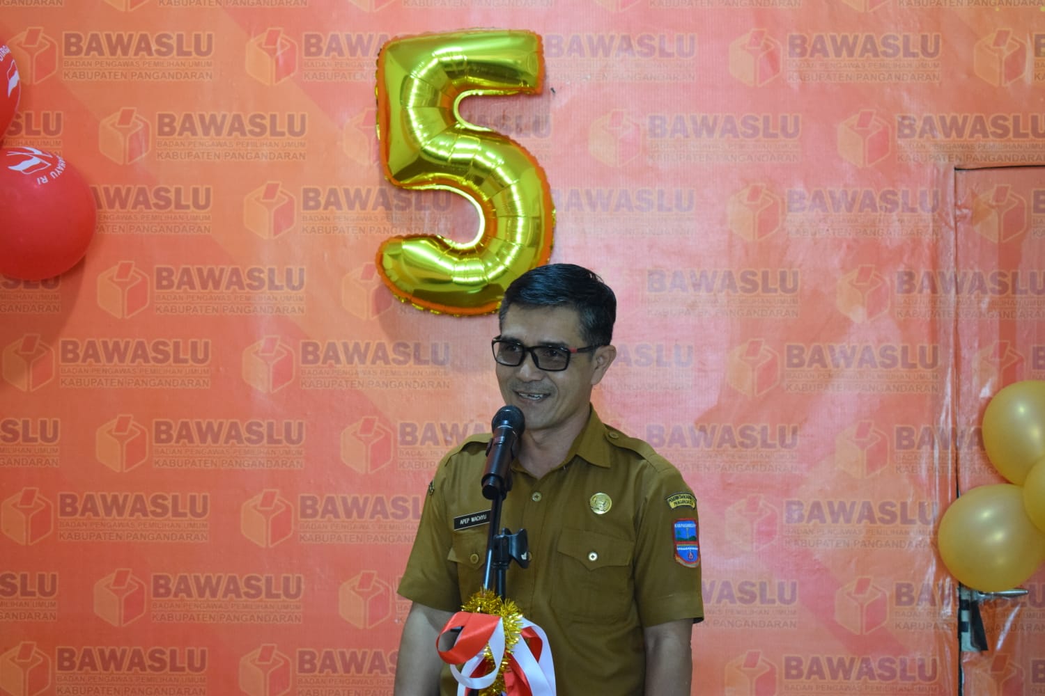 Dalam perayaan tahun ini bertepatan dengan AMJ Pimpinan Bawaslu Kabupaten Pangandaran Periode 2018-2023, sehingga perayaan ini diwakili Koorsek Bawaslu Pangandaran, Apep Wahyu, S.Sos.