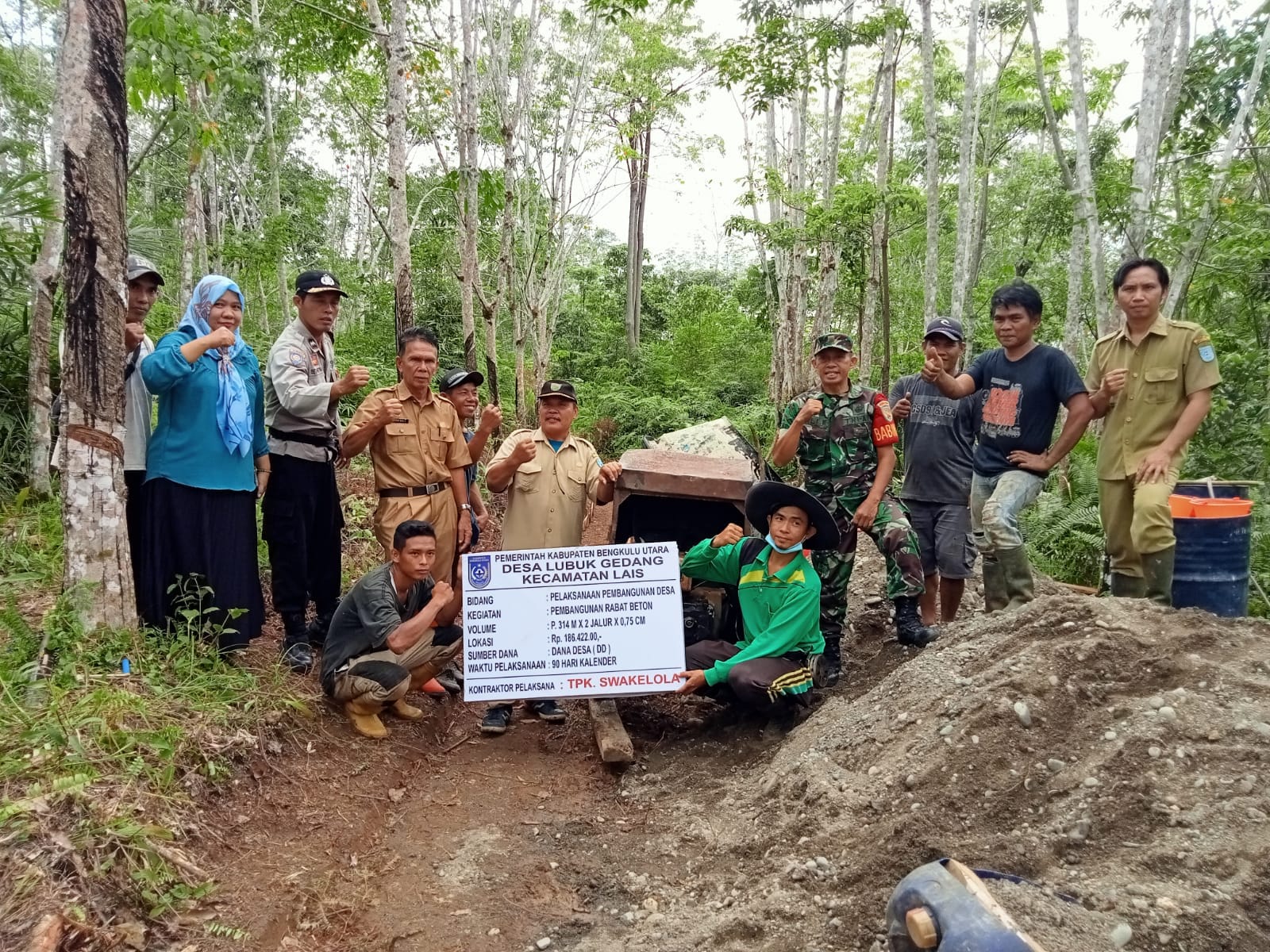 Kapolsek Lais Iptu Sukamto dalam sambutannya berharap semoga pembangunan rabat beton ini nantinya membawa manfaat bagi masyarakat desa Lubuk Gedang dalam mobilitas kegiatan berkebun sehari-hari, dan kapolsek Lais meminta agar warga bersama-sama menjaga dan merawat rabat beton ini.