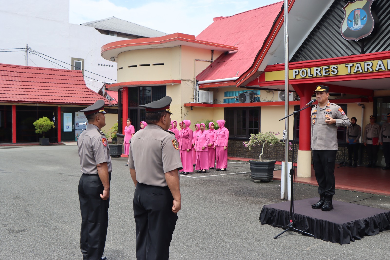 TARAKAN, Polda Kaltara – Kapolres Tarakan AKBP Ronaldo Maradona T.P.P Siregar, S.H., S.I.K memimpin Upacara Korp Raport Kenaikan Pangkat. Pengabdian 3 (tiga) Personel Polres Tarakan periode 01 Mei 2023 di Lapangan apel Polres Tarakan. Selasa, (02/05/2023).
