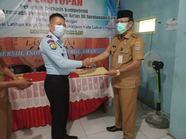Penutupan Pelatihan kerja dalam Belajar mengelas Yang telah dilaksanakan Selama 16 hari yang bekerjasama dengan UPT Balai latihan kerja (BLK) Dinas ketenagakerjaan kota Lubuk linggau Penutupan kegiatan di ruangan aula Lapas kelas lll Surulangun yang di diikuti 20 WBP.dan dari 20 WBP tersebut berhasil Lulus 16 WBP, namun dari 4 orang tersebut yang belum Lulus jangan merasa kecewa dan terusla tingkat kan kepandaian tersebut,nanti di lain waktu akan di adakan lagi Kompetensi seperti itu lagi,siapa tau berhasil.