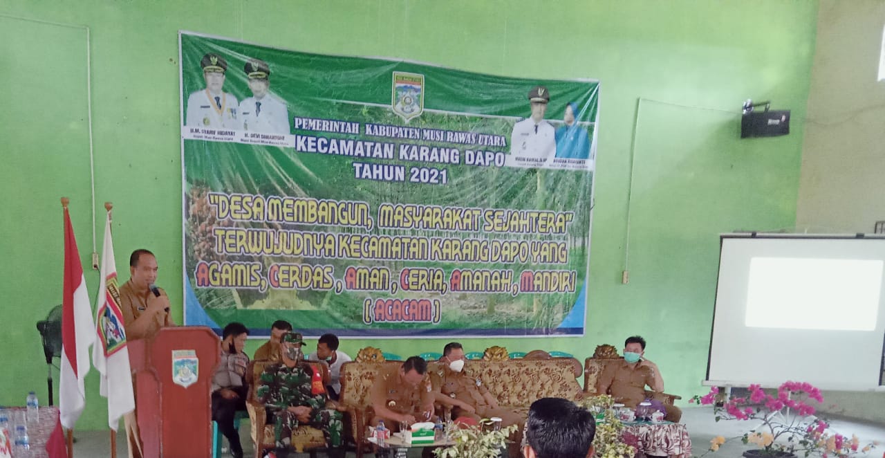 Berita Kab.MURATARA– pemerintah kecamatan karang Dapo kabupaten Musi Rawas Utara (muratara) provinsi Sumatera Selatan, mengelar musrembsng tingkat kecamatan tahun anggaran 2022 di gedung serbaguna kantor camat setempat, Senin 15/2/2021.