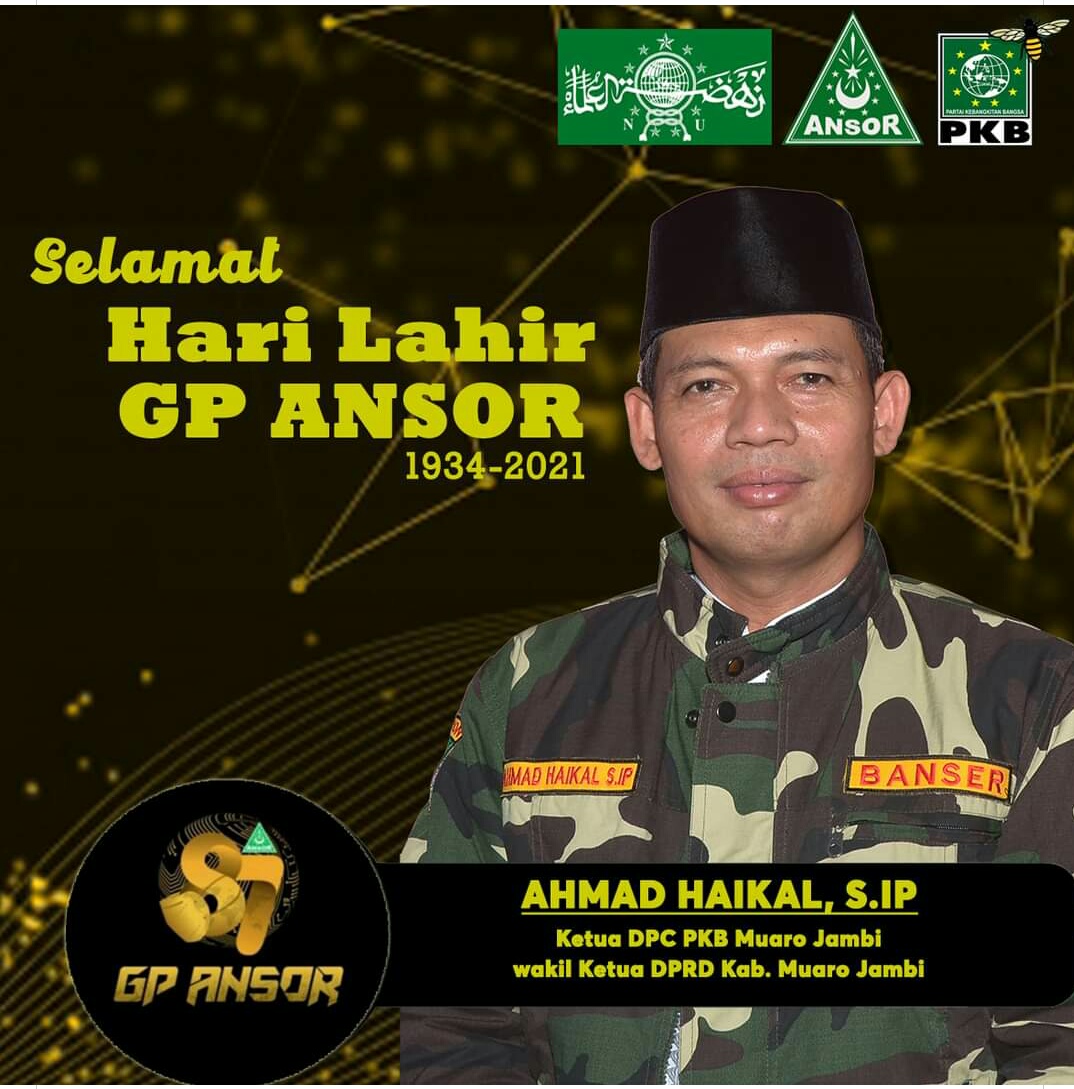 “”Selamat harlah yang ke-87 GP Ansor ( 1934 – 2021 )semoga menjadi yang terdepan dalam merespon berbagai dinamika sosial politik dan kenegaraan di negeri ini, ujar Haikal,Sabtu (24/4/2021)