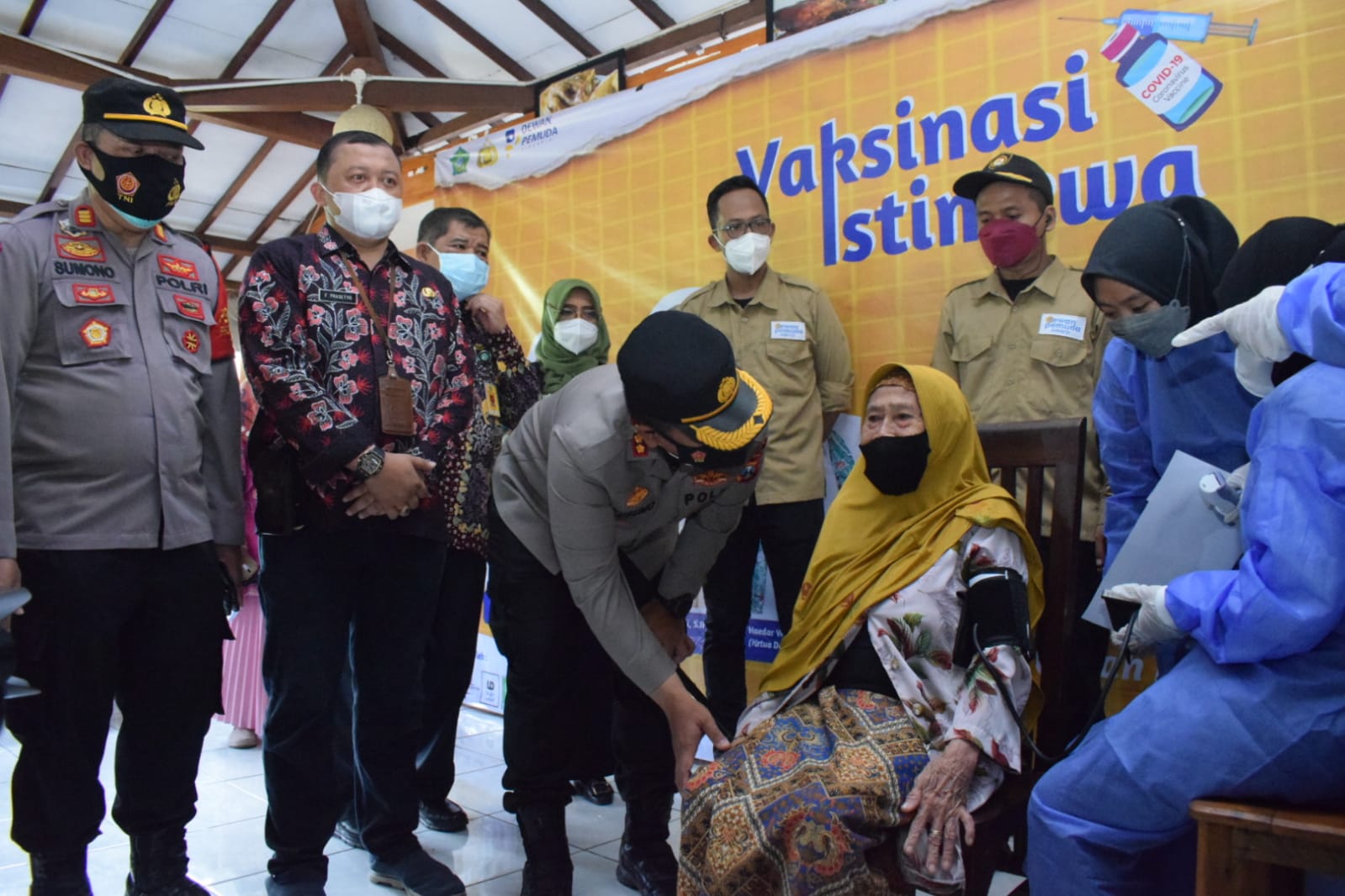 Untuk mempercepat terbentuknya herd immunity bagi warga lansia tersebut, Kamis (14/10/2021) bertempat di Rumah Joglo, Desa Jedongcangkring, Prambon, Sidoarjo, sebanyak 500 lansia disuntik vaksin Covid-19, bersamaan dengan 500 orang disabilitas, pelajar dan masyarakat umum.