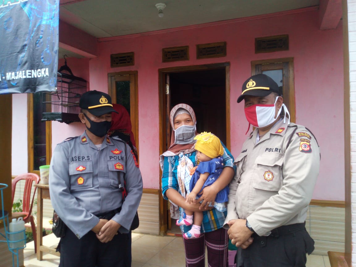 Berita Polres Majalengka— Kapolsek Maja IPTU Asep Saepudin didampingi Ps.Kasat Binmas Polres Majalengka IPTU Baban Kurbandi memberikan paket sembako dan Tali Asih kepada Sdri Hilda yang menderita lahir tanpa anus diwilayah blok Cinangka Desa Cengal Kecamatan Maja kabupaten Majalengka, Senin (1/6/2020).