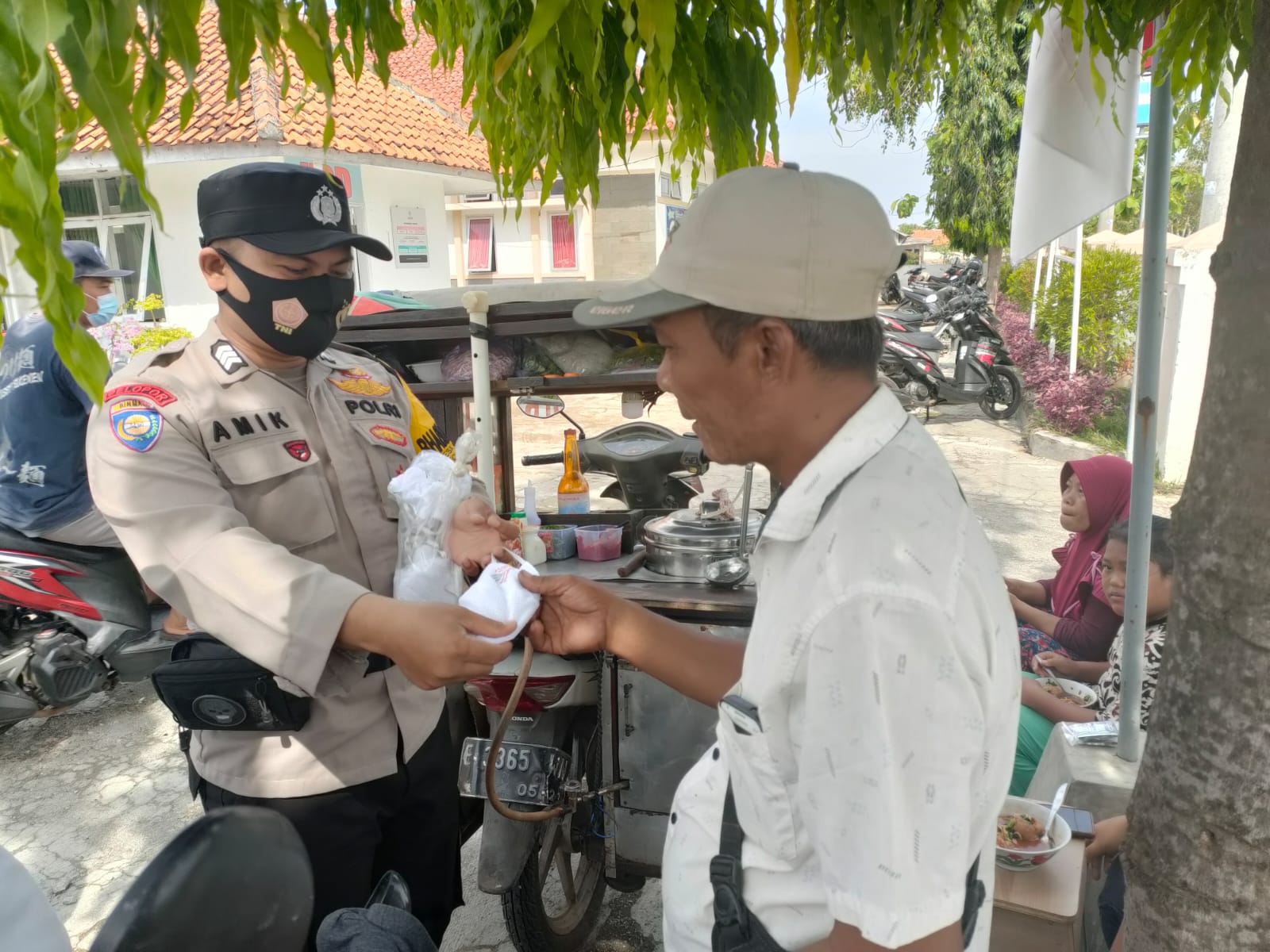 Aksi Simpatik Bhabinkamtibmas Polsek Kertajati Bagikan Masker dan Himbau Taat Prokes Kepada Warga