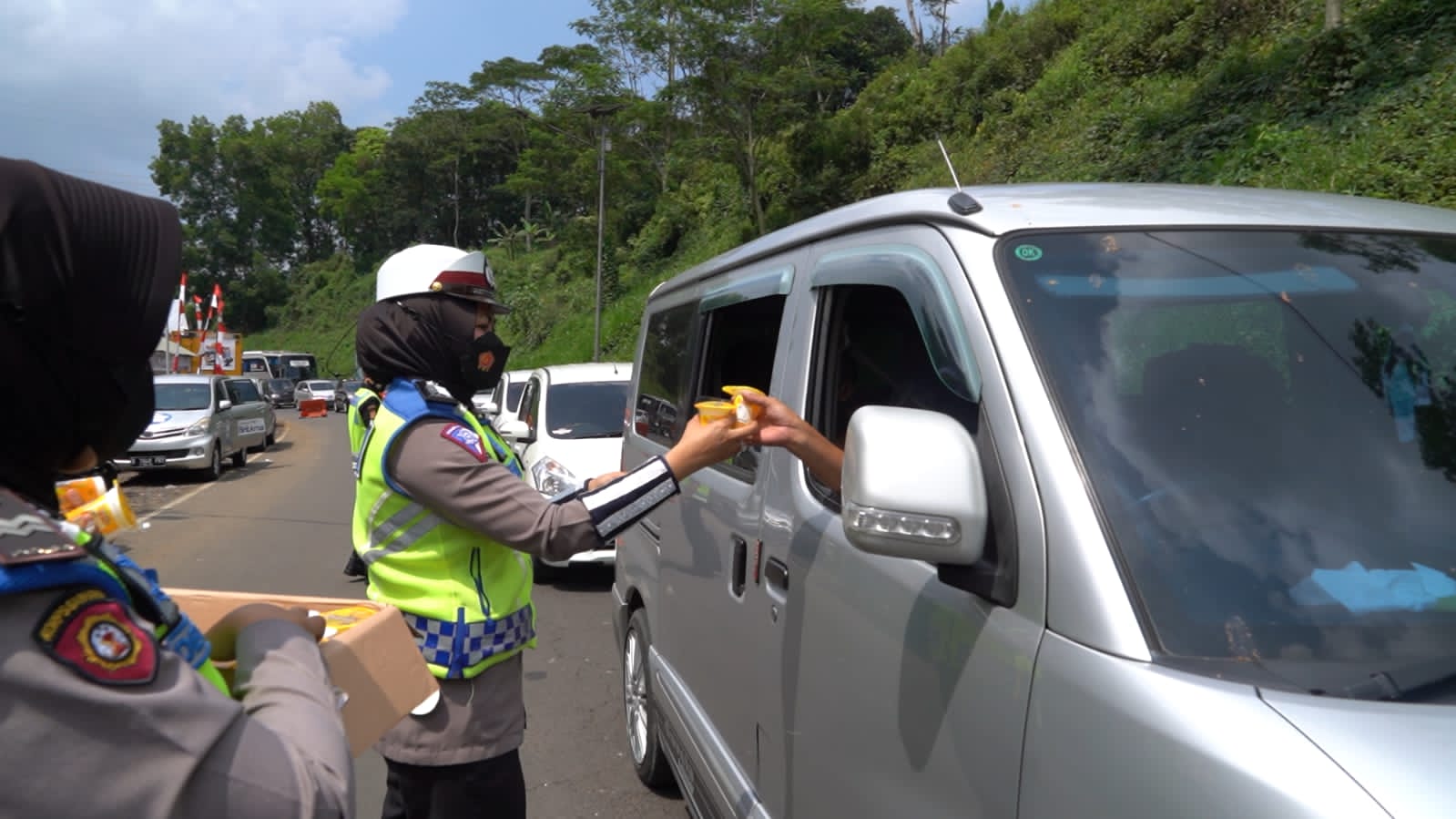 Kapolres Tasikmalaya Kota AKBP Aszhari Kurniawan, S.H., S.I.K., M.Si. mengatakan aksi simpatik Personil Polwan membagikan air mineral dan menghibur para pengendara di tengah kepadatan arus balik Lebaran 2022.