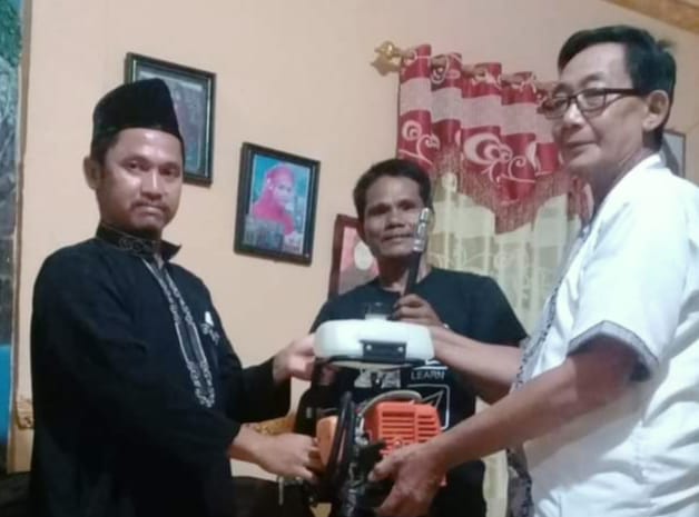 Anggota DPRD muratara komisi II dari fraksi Demokrat, Muhamad Ruslan menyerah bantuan berupa satu unit mesin pemottong rumput kepada ketua karang taruna desa Remban.