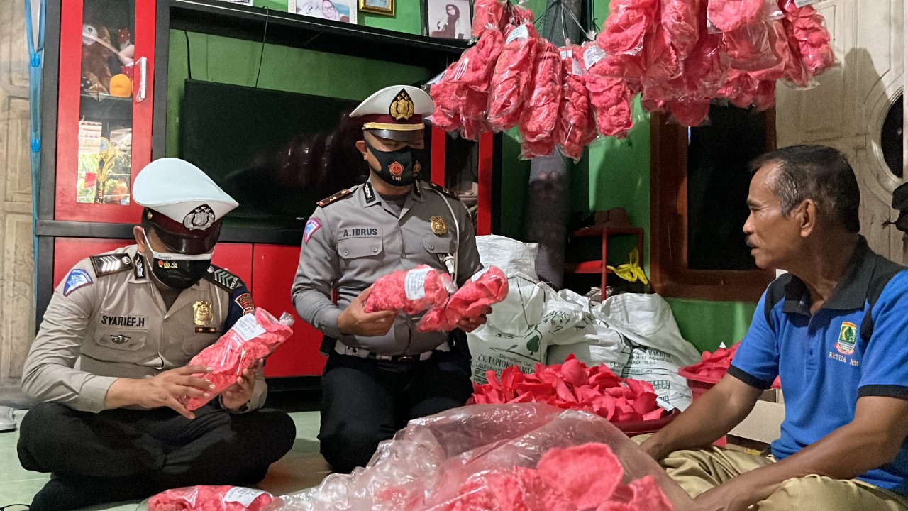 Baraknews POLREs Karawang – Kembali anggota Kepolisian kunjungi pengusaha UMKM di wilayah Kabupaten Karawang, kali ini dengan mengunjungi tempat usaha UMKM kerupuk ningnong rasa kencur milik Endang yang bertempat di Desa Walahar, Klari.