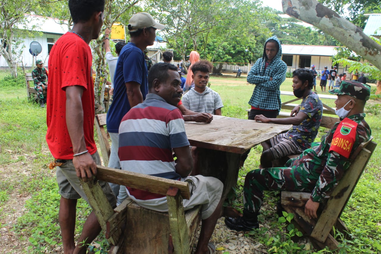 Berita Kab.KAIMANA — Bertempat di kampung Kambala Distrik Buruway, Babinsa Koramil 04/Buruway Kodim 1804/Kaimana Sertu Sukandam berinisiatif mengumpulkan masyarakat binaan guna memberikan pemahaman dan informasi tentang pentingnya vaksinasi Covid-19 bagi imun tubuh agar bisa terhindar dari serangan wabah yang mematikan, Kamis (02/09/2021).