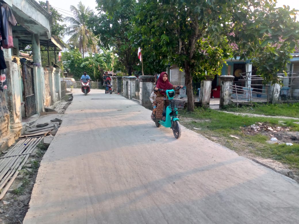 Seorang anak wanita yang tengah asik mengendarai sepeda listriknya, dengan nada polos mengucapkan, terimakasih bapak tentara yang baik. jalan kakak udah bagus, udah bisa main sepeda bersama dedek setiap sore setelah pulang sekolah.