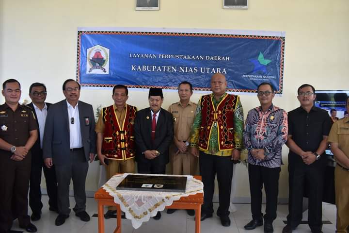 Baraknews Kabupaten Nias Utara (Sumut)-Bapak Drs. Muhammad Syarif Bando, MM (Kepala Perpustakaan Nasional RI) bersama Bupati dan Wakil Bupati Nias Utara menghadiri serta sekaligus meresmikan Gedung Layanan Perpustakaan Daerah Kabupaten Nias Utara, Penandatangan Prasasti di Dinas Perpustakaan Kabupaten Nias Utara. Senin 13 Juni 2022