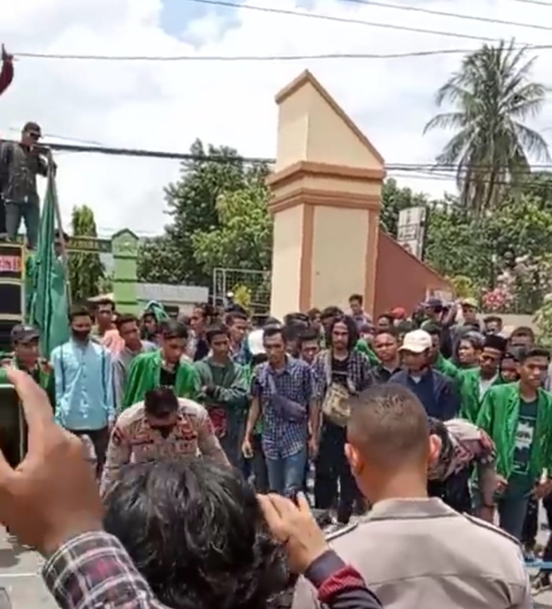 Dae Anton Korlap Aksi BEM STIH Muhammadyah Bima membacakan isi tuntutannya “Meminta Polres Bima Kota segera perintahkan Penyidik Tipikor untuk segera mengundang BPKP NTB agar segera mengaudit kerugian negara atas Kasus tindak pidana Korupsi yang dilakukan oleh Boymin Ketua PKBM Karoko Mas yang diduga merugikan anggaran negara 1,80 milyar itu, “Mendesak Polres Bima Kota agar segera menetapkan tersangka Boymin,SE Ketua PKBM Koroko Mas “Meminta Tipikor Polres Bima Kota untuk segera menyelesaikan kasus ini dalam waktu 7×24 jam, setelah dua tahun lebih lambat penanganannya, Mendesak Polres Bima Kota segera tetapkan tersangka kasus Pemalsuan Ijasah yang dilakukan oleh IPA SUKA anggota Dewan Perindo Kota Bima, dan segera proses kasus pengancaman yang dilakukan oleh oknum Anggota dewan fraksi PDIP kab.bima terhadap salah satu kader kami yang sudah dilaporkan beberapa waktu yang lalu. Harapnya.