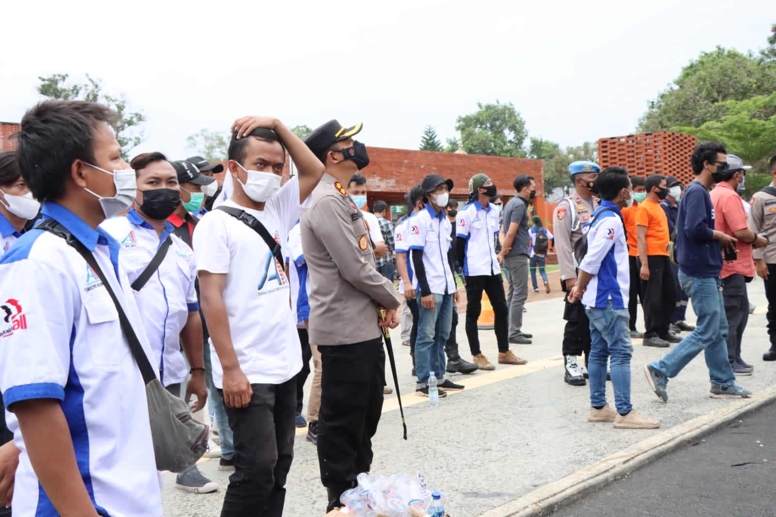 Selain itu dalam pengamanan unras dari Pihak Polwan Polres Majalengka membagi bagikan air minum meneral dan masker guna menyejukkan situasi serta guna pencegahan dari penularan virus Covid-19.