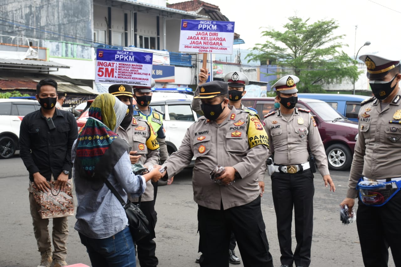 Dalam kegiatan tersebut juga turut hadir Kasat Lantas, Kasat Sabhara, serta para Perwira Lantas, dan Personel Lantas Polres Banjar, dengan membawa alat peraga berupa poster bertuliskan Ingat PPKM Jaga Diri, Jaga Keluarga, Jaga Negara.