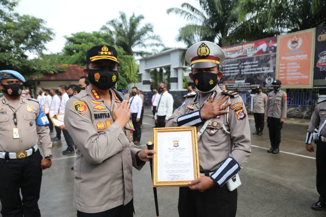 “Alhamdulillah hari ini kamk dapat melaksanakan Upacara Pemberian Penghargaan kepada anggota Polresta Tangerang yang berprestasi,” kata Kapolresta Tangerang Kombes Pol Wahyu Sri Bintoro.
