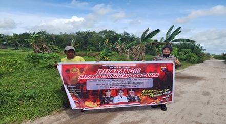 Dalam sosialisasi tersebut Bhabinkamtibmas Briptu Dewi Apriliani membentang spanduk Stop kebakaran Hutan dan lahan dan menghimbau kepada masyarakat tentang larang pembakaran hutan dan lahan sesuai undang-undang Nomor 41 tahun 1999 tentang kehutanan dan undang-undang Nomor 1 tahun 1946 tentang KUHP.