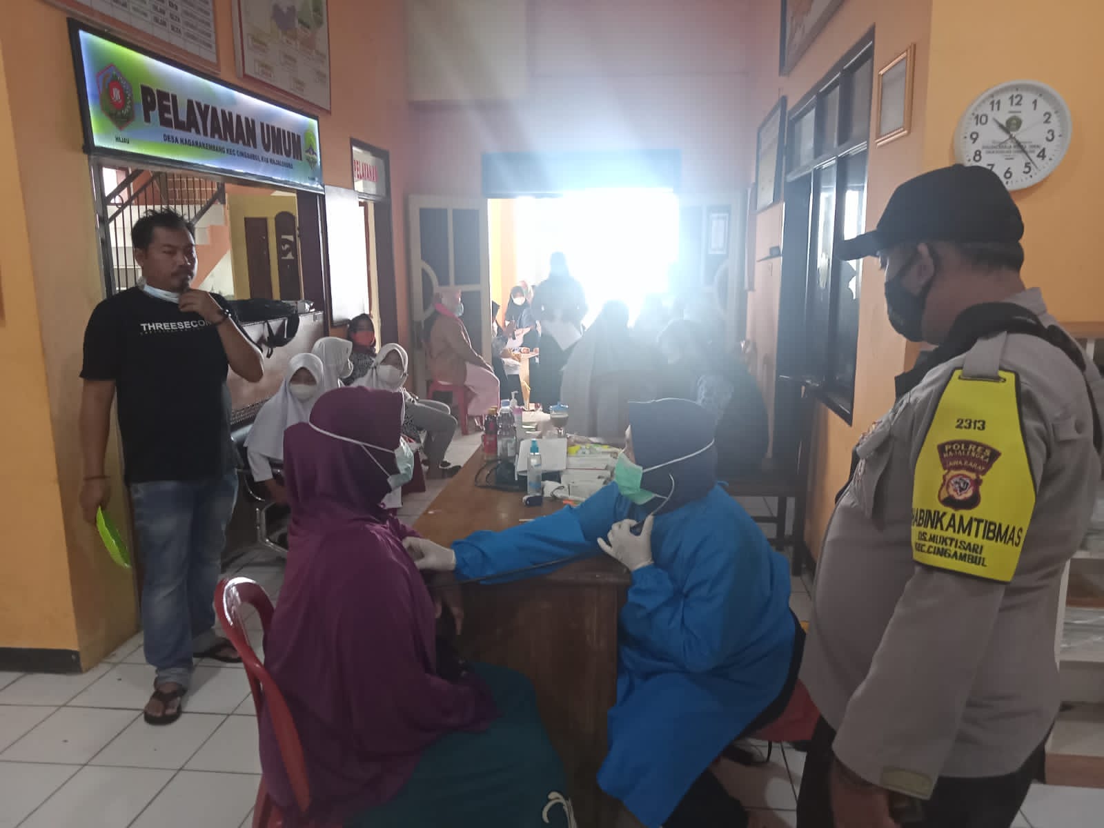 Majalengka, Bhabinkamtibmas Polsek Cingambul Polres Majalengka Monitoring Kegiatan Gebyar Vaksinasi Covid 19 di Desa Nagarakembng Kecamatan Cingambul Bekerjasama dengan Puskesmas Kecamatan Cingambul, Selasa (19/10/2021).