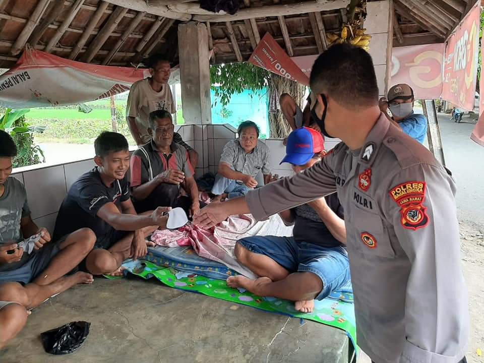 Berita Polres Majalengka— Upaya untuk memutus rantai penyebaran Covid-19 terus dilakukan pihak Polsek Kasokandel Polres Majalengka mulai dari sosialisasi untuk mematuhi protokol kesehatan hingga membagikan masker secara gratis kepada warga oleh Bhabinkamtibmas Polsek Kasokandel.