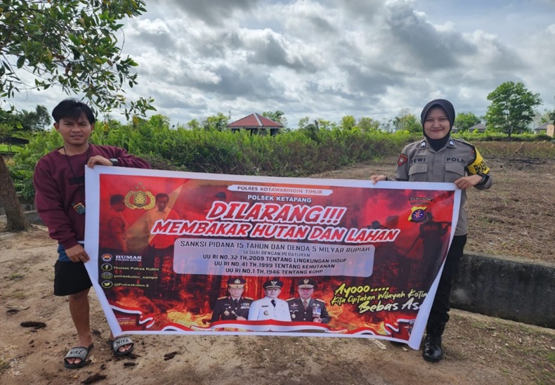 Dalam sosialisasi tersebut Bhabinkamtibmas Desa Eka Baharui Polsek Ketapang Briptu Dewi Apriliana membentang spanduk Larangan membakar Hutan dan lahan dan menghimbau kepada masyarakat tentang larang pembakaran hutan dan lahan sesuai undang-undang Nomor 32 tahun 2009 tentang lingkungan hidup dan undang-undang Nomor 41 tahun 1999 tentang kehutanan dan undang-undang Nomor 1 tahun 1946 tentang KUHP.