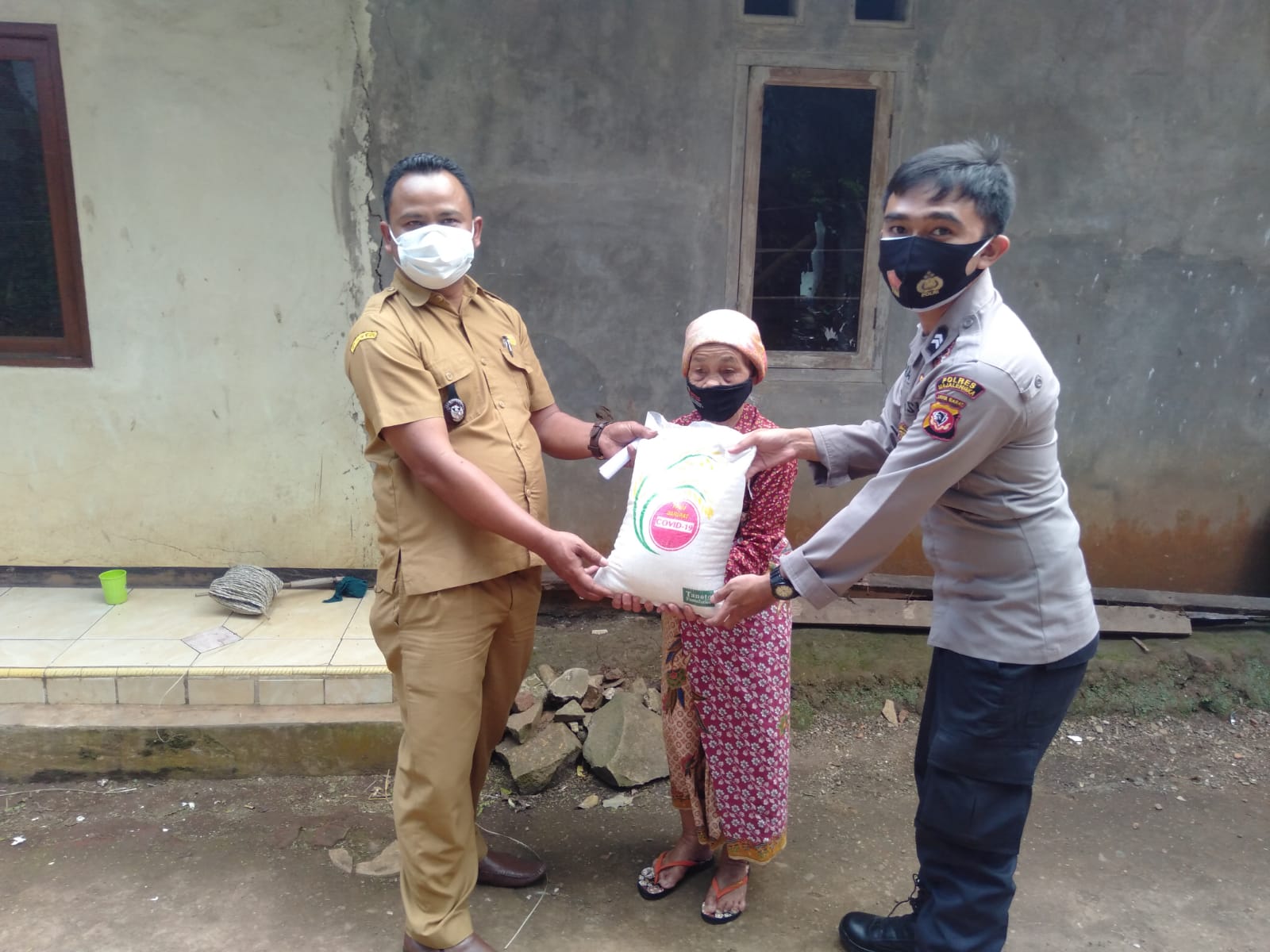 Berita Polres Majalengka, Bhabinkamtibmas Polsek Malausma Polres Majalengka kemnali door ro door salurkan bantuan sosial berupa paket beras kepada warga miskin terdampak Covid-19 terutama saat pemberlakuan PPKM, Kamis (19/8/2021).