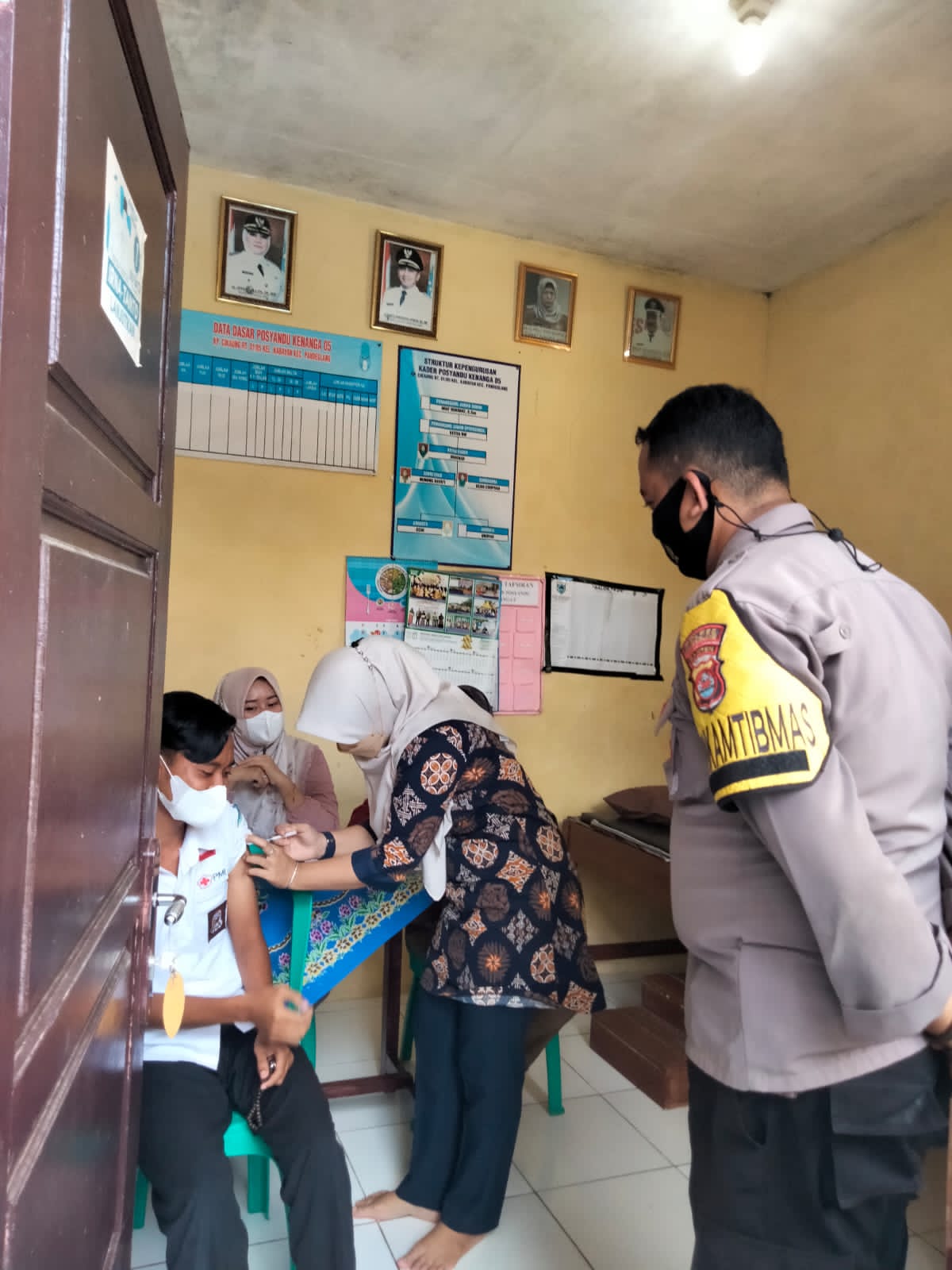 Berita Polsek Pandeglang, Berbagai upaya terus dilakukan Polsek pandeglang untuk putuskan mata rantai penyebaran Covid 19 di wilayah Hukum Polsek Pandeglang Polres Pandeglang, Salah satu diantaranya adalah dengan melaksanakan *VAKSINISASI di Posyandu kananga 05 Kp Cikaung Kel kabayan kec Pandeglang kab Pandeglang oleh PKM kec Pandeglang*, dengan