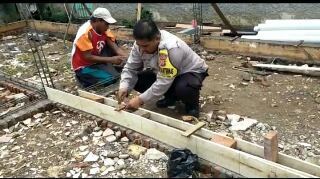 Kapolsek Karawang Kota, Kompol Marsono mengarahkan anggotanya yaitu, Bhabinmas Desa Warung Bambu, Aiptu Asep Hadi untuk membantu mengerjakan pembangunan rumah Bapak Aripin”, ucap Kapolsek.