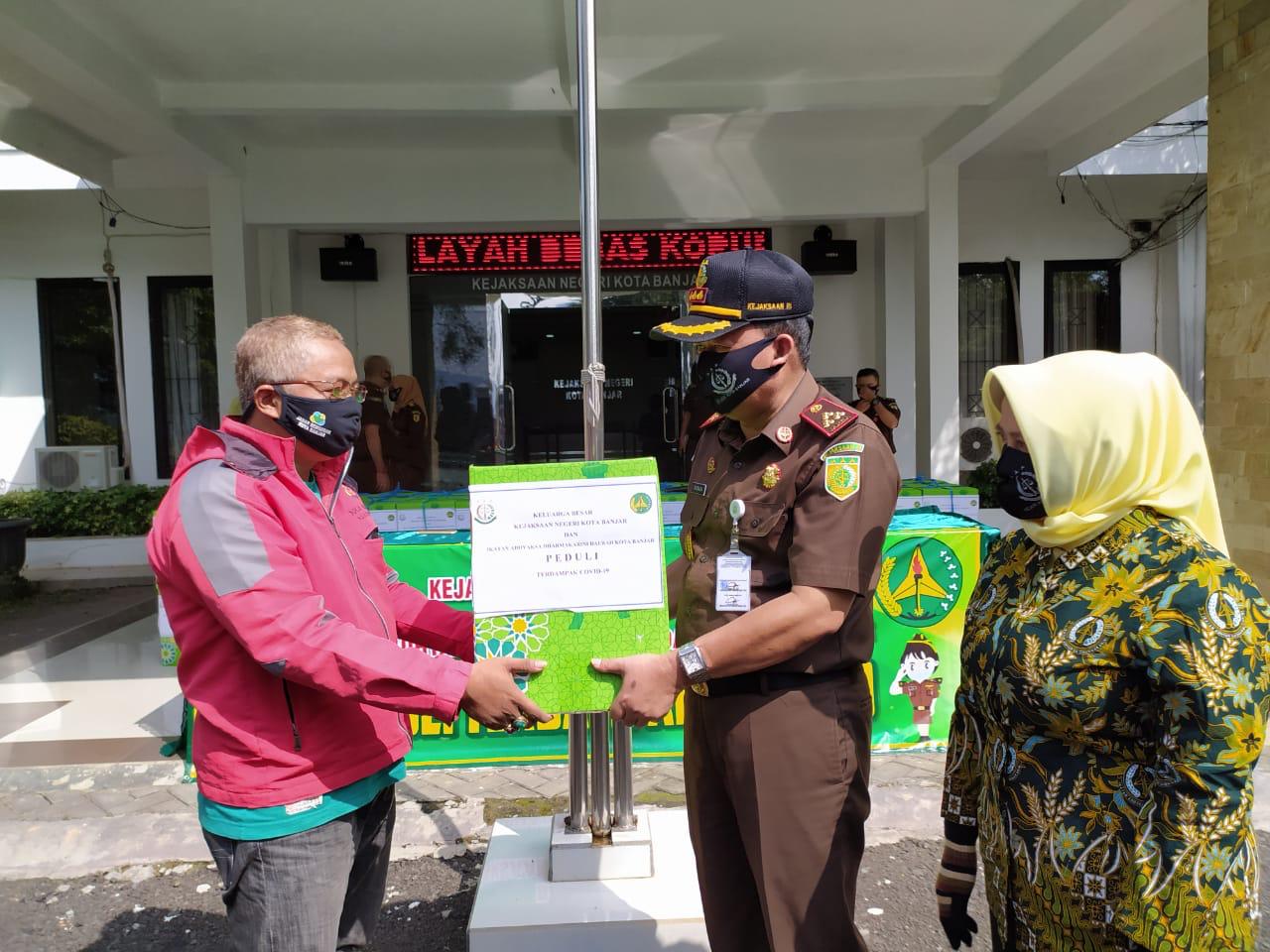 Berita Banjar (Jawa Barat)– Keluarga Besar Kejaksaan Negeri (Kejari) Kota Banjar, dan Ikatan Adhyaksa Dharmakarini Daerah Kota Banjar, membagikan sebanyak 100 paket sembako, kepada warga masyarkat yang terdampak covid 19, yang ada disekitar Kantor Kejaksaan Negeri, Kota Banjar, Jawa Barat, Kamis (30/04/2020).