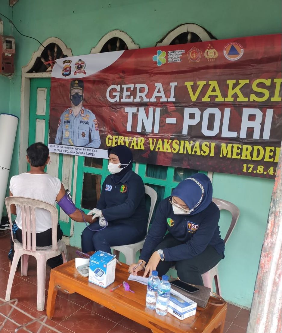 Kabiddokkes Polda Banten KBP dr. Agung Widodo mengatakan, “Hari ini Biddokkes Polda Banten mengadakan gerai vaksin keliling di Desa Cikedung Kasemen dan gerai vaksin Rumah Sakit Bhayangkara Polda Banten,” ujar Agung.