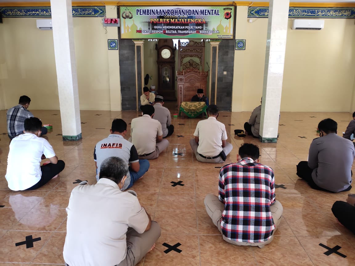 Berita Polres Majalengka–, Setelah melaksanakan apel pagi dan melaksanakan program sodaqoh kamis berkah, Anggota Polres Majalengka menggelar kegiatan Pembinaan Rohani dan Mental (Binrohtal), Kamis (08/04/2021). Kegiatan ini dilaksanakan rutin setiap seminggu sekali pada hari Kamis, kegiatan Binrohtal diikuti seluruh Personel Polres Majalengka.