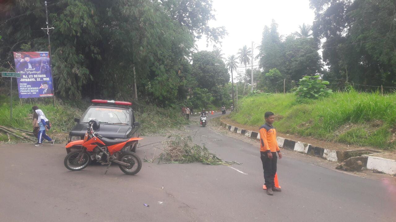 Berita Pandeglang, – Tim gerak cepat dari Badan Penanggulangan Bencana Daerah (BPBD) Kabupaten Pandeglang sigap langsung turun membersihkan dan membabat/memotong bambu yang roboh ke jalan raya Pandeglang-Rangkas, tepatnya di Kampung Tenjolaya, Kelurahan Kabayan, Kecamatan Pandeglang, Kamis (18/11/21).