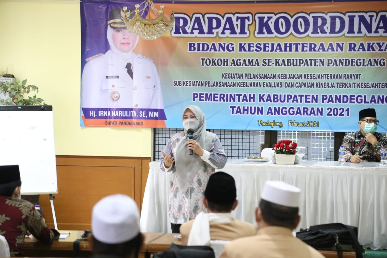 Berita Kab. Pandeglang – Program pembangunan di Kabupaten Pandeglang tiap tahun terus bergulir, baik infrastruktur, ekonomi, pendidikan maupun kesehatan. Bupati Pandeglang Irna Narulita mengajak, jajaran Majlis Ulama Indonesia (MUI) Kecamatan mengawal program pembangunan. “Dari semua program pembangunan tentu ada saja yang terhambat, untuk itu kami ingin didampingi ulama yang ada di Kecamatan kami yakin berjalan dengan baik,” demikian dikatakan Bupati Irna Narulita pada acara Rapat Koordinasi Bidang Kesejahteraan Rakyat di Rumah Makan Rizqi, Rabu (18/2/2021).