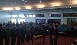 KAB.CIAMIS — Bupati Ciamis lantik pejabat eselon II di lingkungan pemerintahan kabupaten ciamis jumat (18/10/2019) diaula setda kabupaten ciamis,adapun ke 16 pejabat eselon II yang dilanti adalah : Drs Endang Sutisna MSI Kepala Dinas Perhubungan, Drs.H.Adang Darajat.MM staf ahli bidang hukum pemerintahan dan kesejahteraan rakyat, Drs.ika Darma Iswara asisten pemerintahan Sekretaris Daerah,Dr.H Tatang M.pd, H.Deden Wahidin SH.MM sebagai Inspektur, Drs.Haji Oman Rohman MM sebagai Asisten pemerintahan administrasi ummum setda, Agus Kurnia Kosasih SH MSI Kepala Dinas Sosial, Dra. Yeyet trisnayanti Kepala Badan Kepegawaian dan pengembangan sumber daya manusia