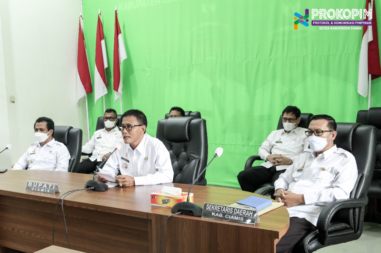 Turut Hadir mendampingi Bupati Ciamis, Wakil Bupati Ciamis, Sekretaris Daerah, Para Asisten Daerah, Kepala Bappeda Ciamis serta diikuti oleh seluruh unsur Forkopimda dan pihak terkait lainya melalui Virtual.