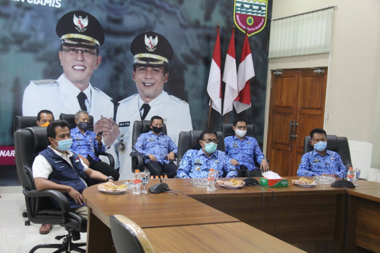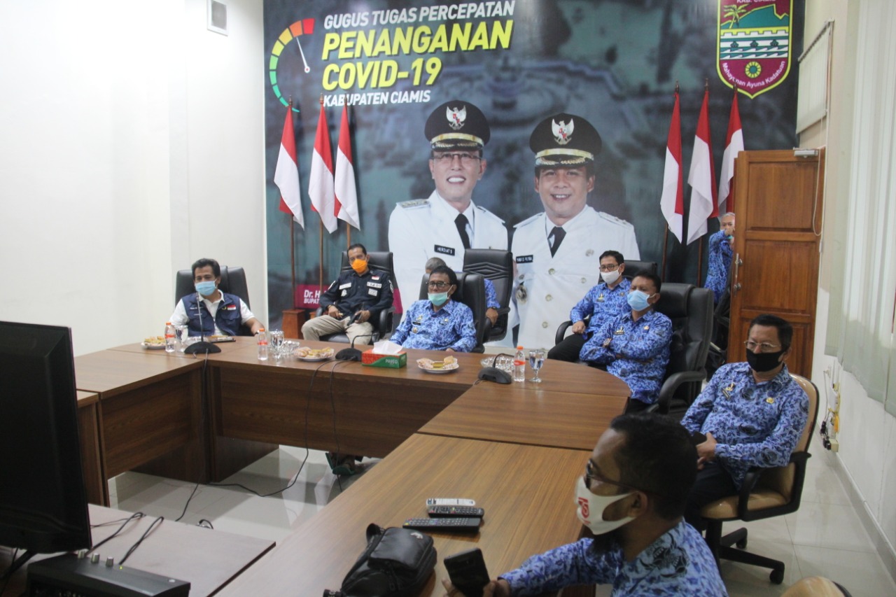 Rapat yang dilakukan via Video Converence diikuti oleh beberapa Kepala Daerah baik Provinsi maupun Kabupaten Kota termasuk Bupati Ciamis Herdiat Sunarya dengan di dampingi oleh wakilnya, sore tadi, Kamis (17/09/2020).