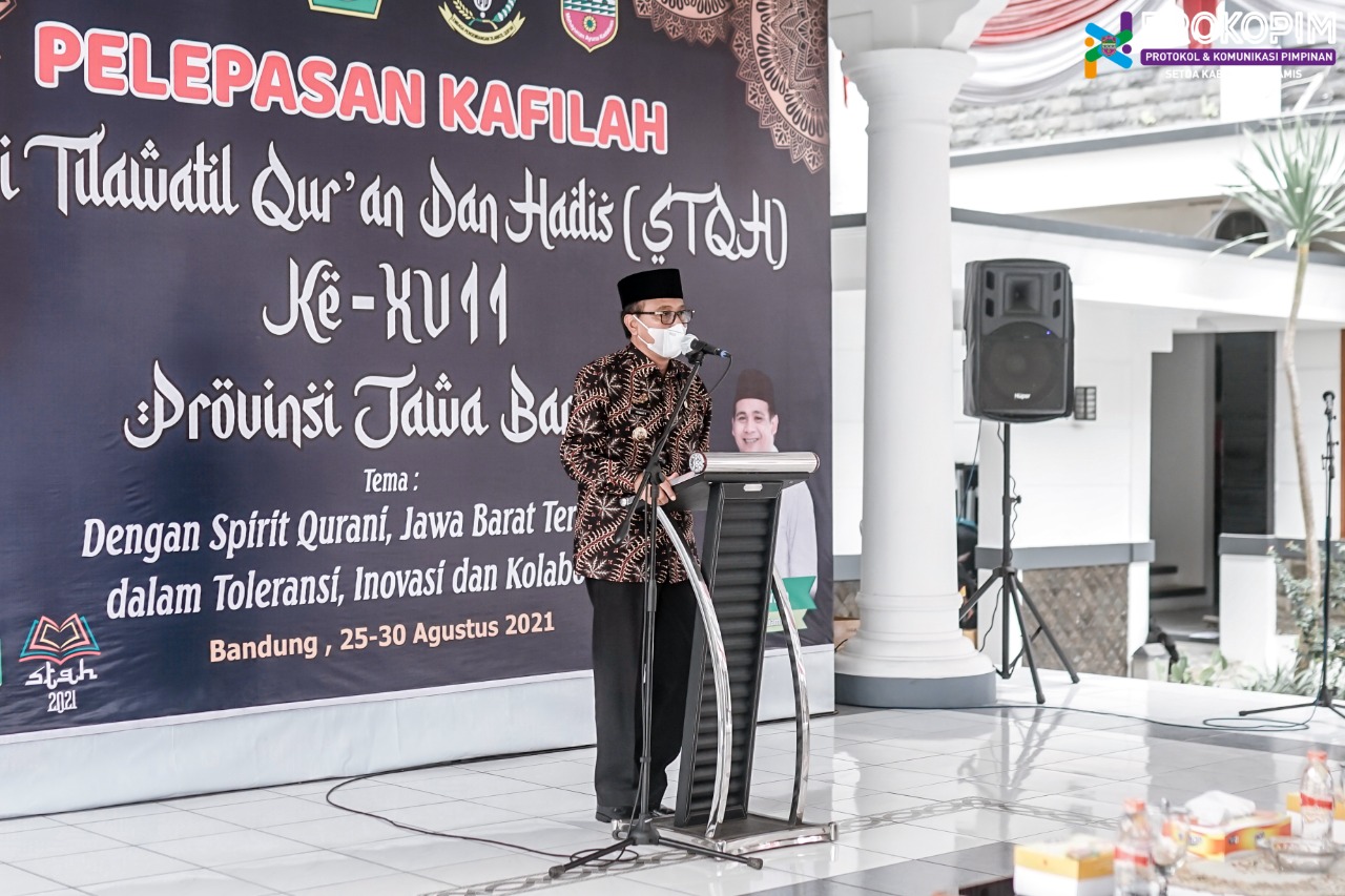 Berita Pemda Ciamis – Bupati Ciamis Herdiat Sunarya melepas secara langsung 17 Kafilah perwakilan Kabupaten Ciamis untuk mengikuti Seleksi Tilawatil Qur’an dan Hadits (STQH) ke 17 tingkat Provinsi Jawa Barat di Joglo Timur Pendopo, Jum’at (27/08/2021).