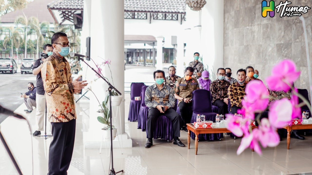 Dalam kesempatan tersebut tidak lupa Bupati Herdiat mengajak untuk senantiasa menerapkan protokol kesehatan karena yang terkonfirmasi positif untuk Kabupaten Ciamis setiap harinya terus meningkat.