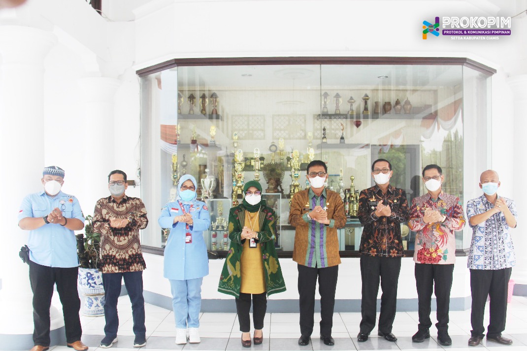 Berita Pemda Ciamis – Bupati Ciamis, Herdiat Sunarya menerima kunjungan dari Kementerian Sosial (Kemensos) Republik Indonesia di Joglo Barat Pendopo Bupati Ciamis, Kamis (24/6/2021). Kunjungan dari Kemensos tersebut dipimpin oleh Direktur Perlindungan Sosial Korban Bencana Sosial Kemensos RI, Sunarti.