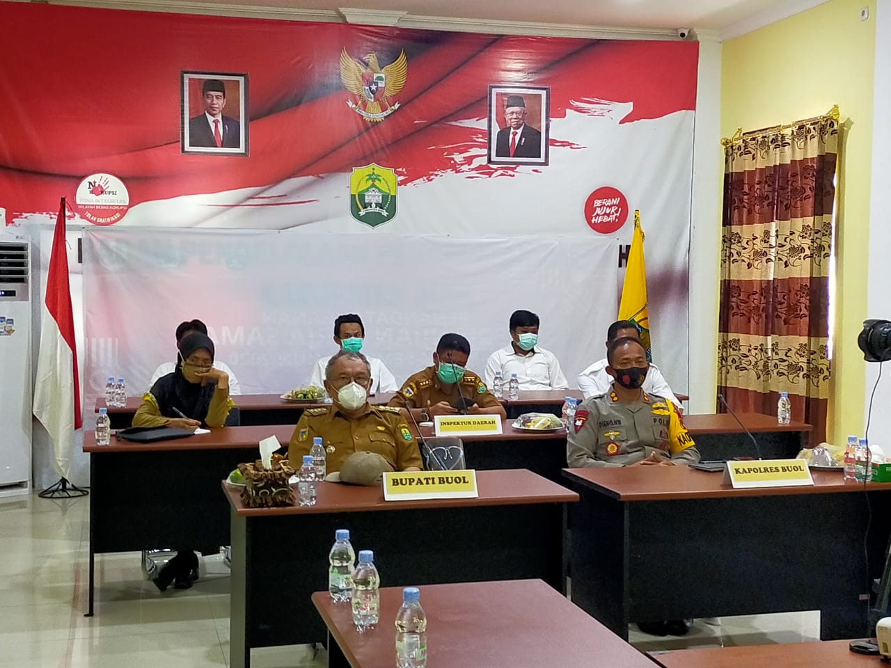 Berita Buol (Sulteng) — Dalam rangka penandatanganan  PKS dan maklumat bersama antara Gubernur dan Kapolda Sulawesi Tengah yang diikuti Bupati Buol dan Kapolres Buol mengikuti giat secara virtual,  bertempat di kantor Pendapatan Daerah Kabupaten Buol, Senin (28/09/2020).