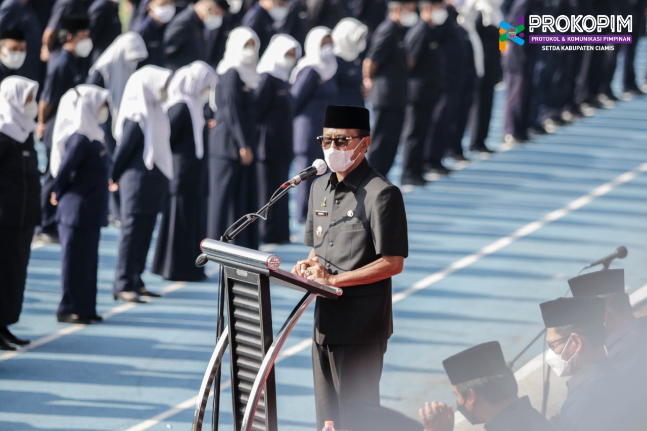 Berita Pemda Ciamis* – Sebanyak 303 Kepala Sekolah dan Jabatan Fungsional dilantik serta di ambil sumpahnya oleh Bupati Ciamis Herdiat Sunarya dengan mengambil tempat di Stadion Galuh Ciamis guna mengurangi kerumuman dimasa pandemi Covid-19 pada hari Jum’at, (09/04/2021).