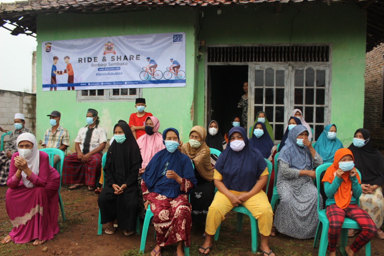 Ride and Share berbagi sembako ini diikuti Wakapolda Banten BJP Ery Nursatari bersama General Manager Asset Management BFI Finance Jabodetabek Tan Eng Han, Direktur Kabar Banten Rachmat Ginandjar dan Pejabat Utama (PJU) Polda Banten.