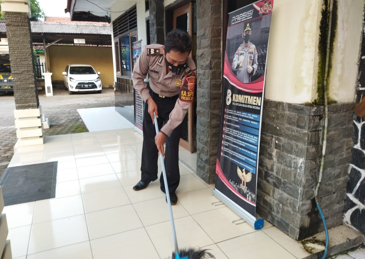 Berita POlres Majalengka–, Sesuai arahan Kapolres Majalengka AKBP Syamsul Huda melalui Kapolsek Jatitujuh IPTU Kenedi Joko Lelono, Ka SPKT Polsek Jatitujuh melakukan sebelum aktifitas kerja bhakti membersihkan setiap ruangan dan lingkungan Mapolsek. Rabu (9/6/2021).