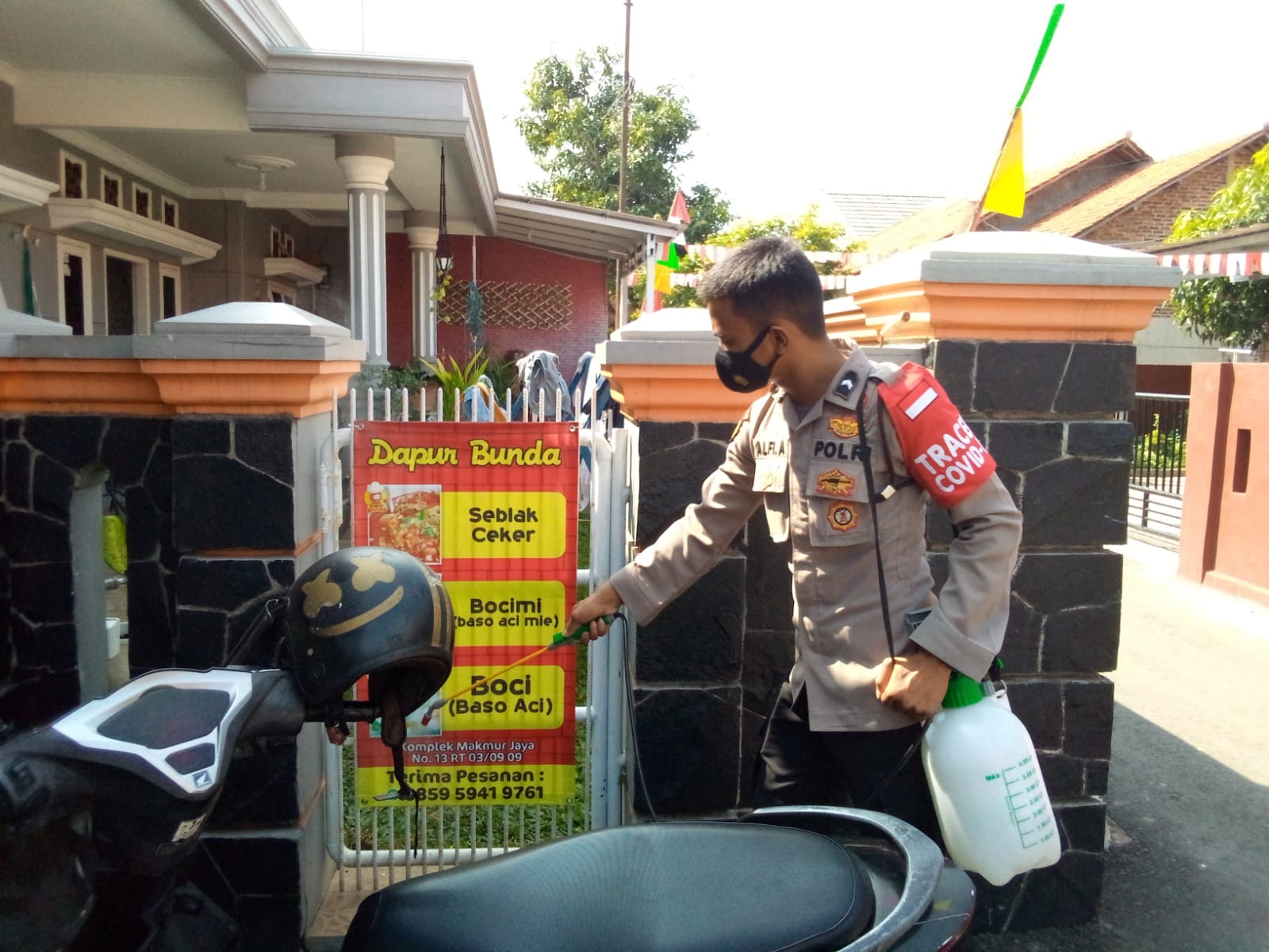 Berita Polres Kota Serang – Polsek Taktakan Polres Serang Kota Polda Banten melaksanakan kegiatan penyemprotan disinfektan di rumah warga di Komplek Makmur Jaya Kelurahan Drangong kecamatan Taktakan Kota Serang. Senin (16/8/2021).
